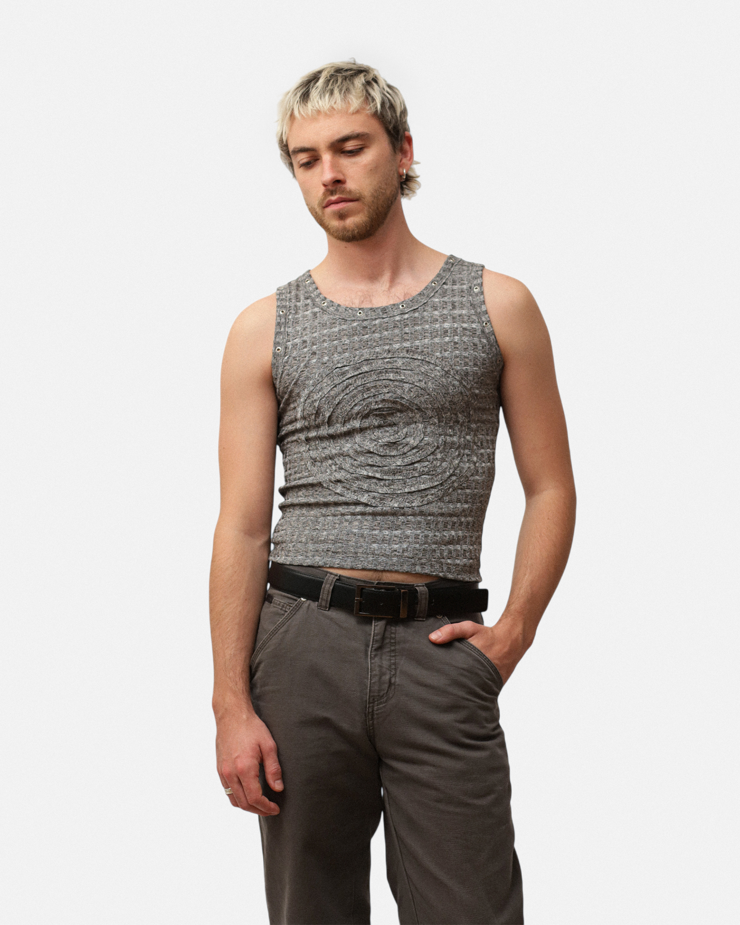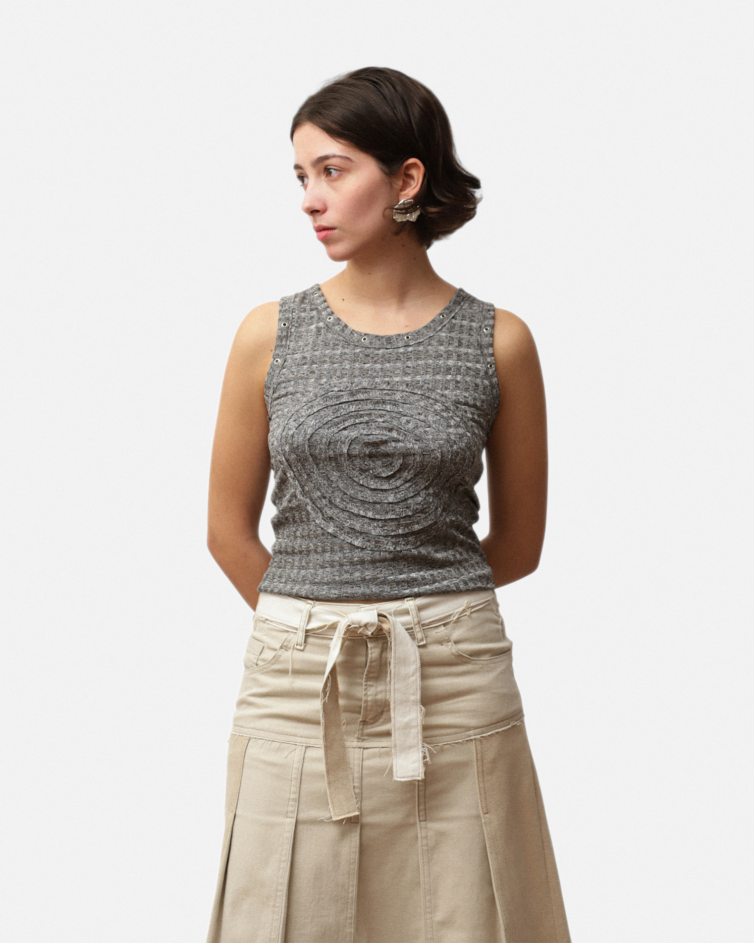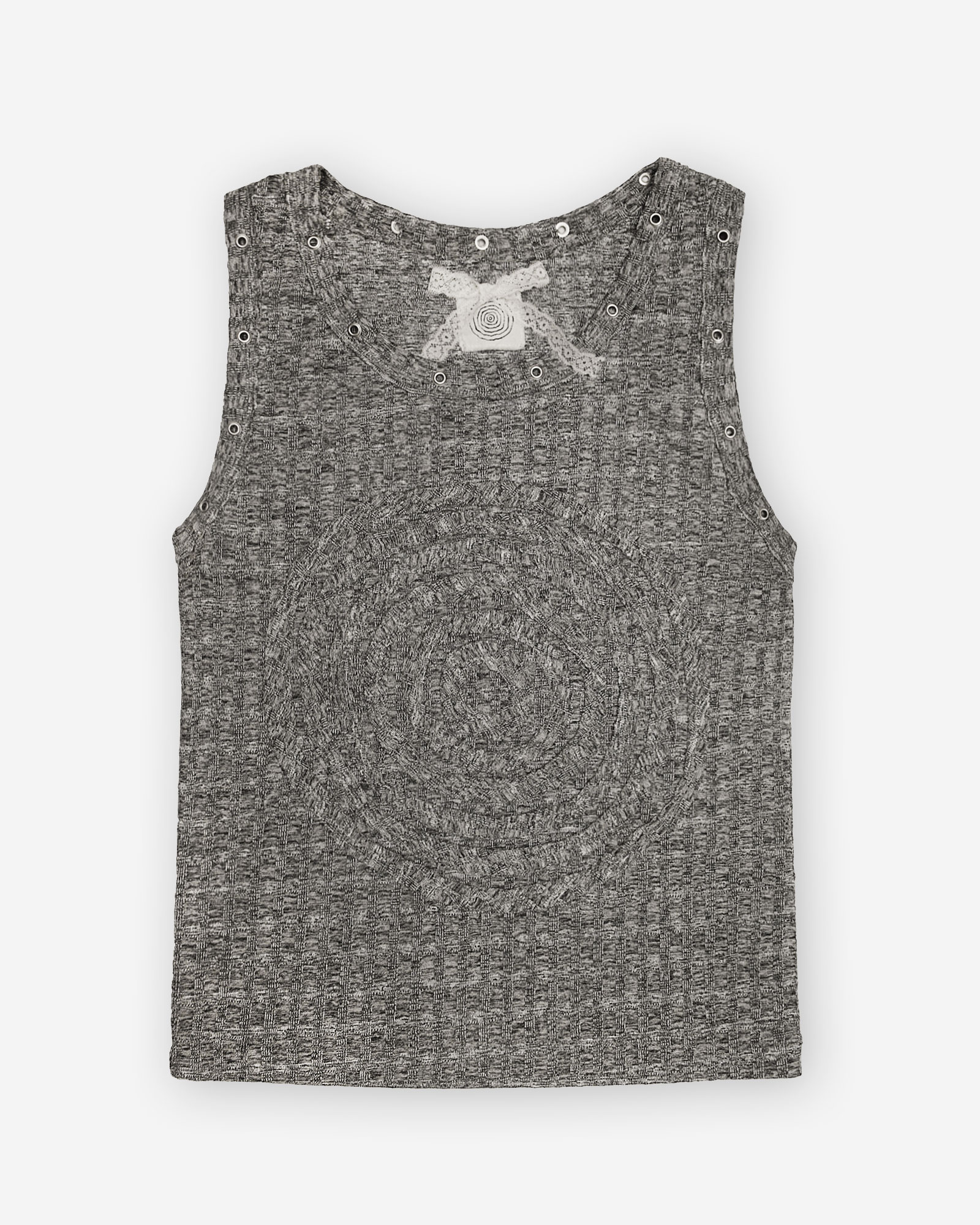 Samarreta de tirants, llarga fins la cintura. Ullets al voltant del coll i de la sisa. Al centre, cosit el logotip de la marca . Samarreta lleugera i versàtil.